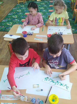 Детям очень нравится разглядывать их, играть с ними, прикасаться к прекрасному, созданному руками человека. И когда мы все это рассмотрим, потрогаем и пощупаем, потом пробуем изображать каждый элемент по отдельности на полоске бумаги. Например, Дымка. Здесь мы рисуем кольца,кружочки, точки и другие геометрические рисунки, свойственные этому виду росписи. В Городце мы учимся рисовать купавки, розаны, волшебных коней и птиц. В Хохломе - завитки, ягодки, листочки и другие травные элементы. В Гжели - те же купавки и розаны, но лишь в двух цветах - белом и синем. В Жостове - всевозможные садовые и полевые цветы, и т.д.